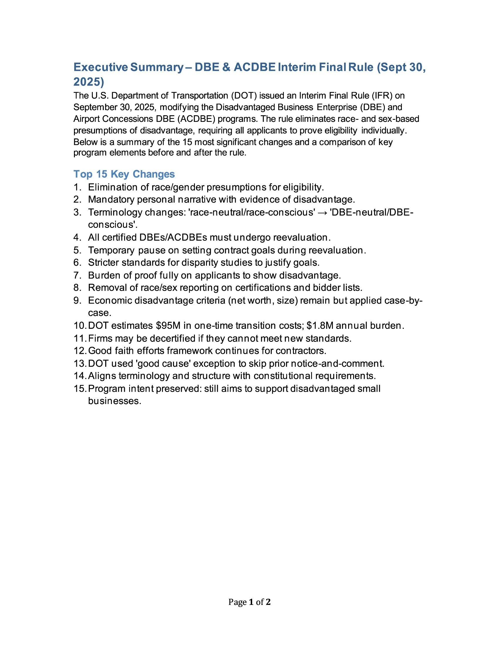 Disadvantaged Business Enterprise Program and Disadvantaged Business Enterprise in Airport Concessions Program Implementation Modifications